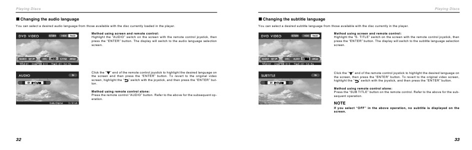 Press the “SUB TITLE” button on the remote control. Refer to the above for the subsequent operation.