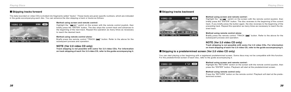 on track skipping of each Ver 2.0 video CD, refer to the guide accompanying it.