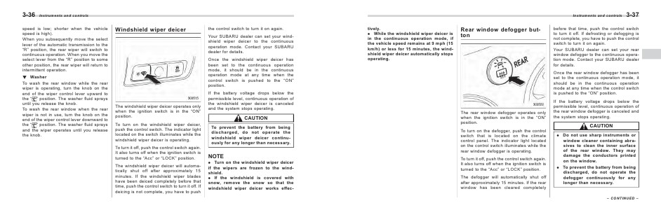 Your SUBARU dealer can set your windshield wiper deicer to the continuous