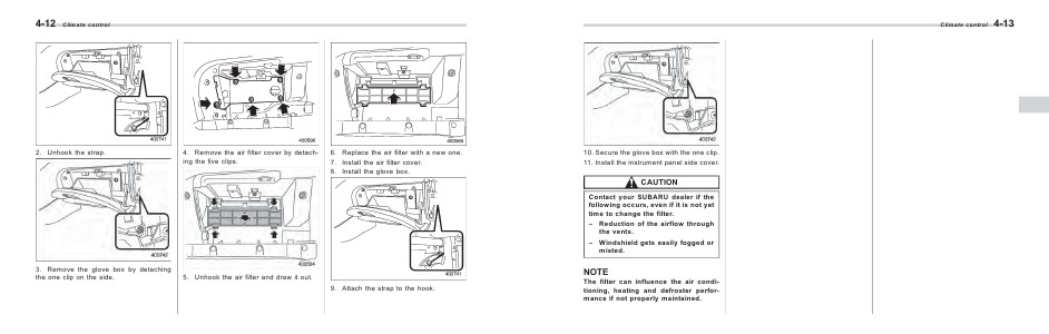 The filter can influence the air conditioning, heating and defroster performance if not properly maintained.