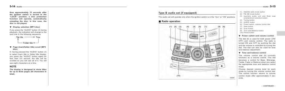 Type B audio set (if equipped)