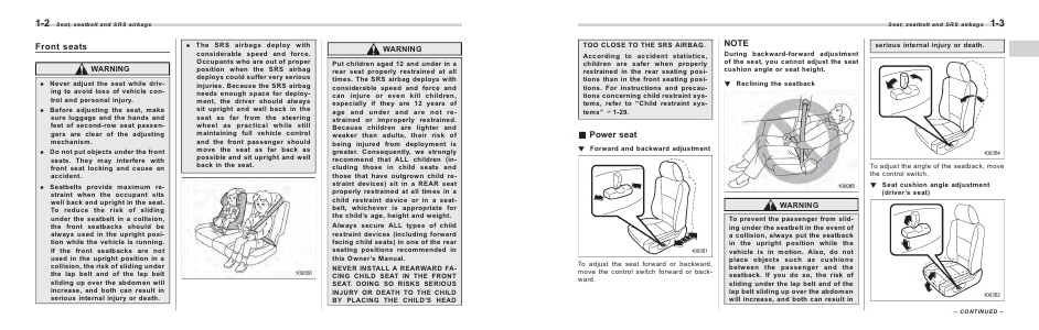 . Never adjust the seat while driving to avoid loss of vehicle control and personal injury.