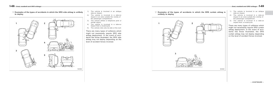 ! Examples of the types of accidents in which the SRS side airbag is unlikely