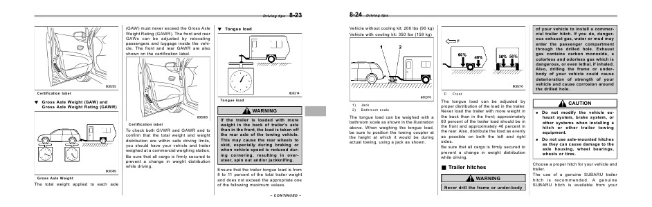 of your vehicle to install a commercial trailer hitch. If you do, dangerous exhaust gas, water or mud may
