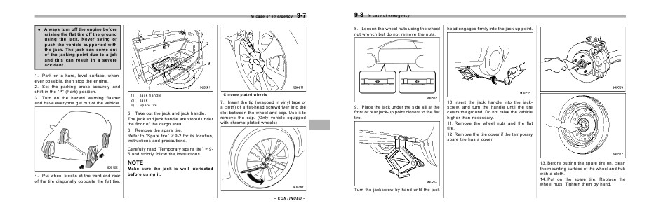 10. Insert the jack handle into the jackscrew, and turn the handle until the tire