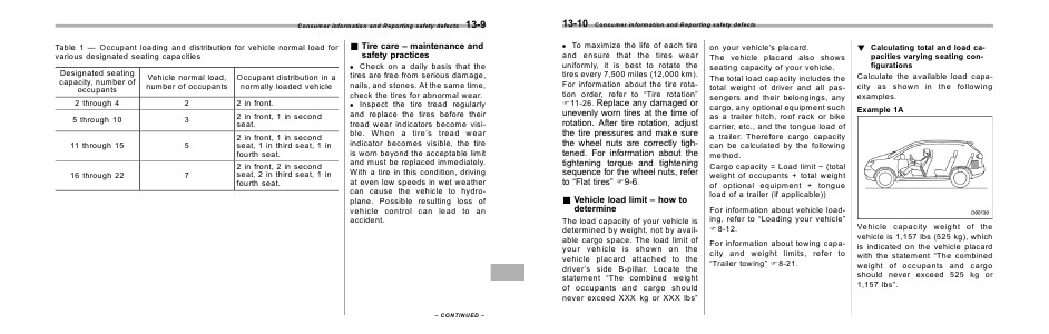 Table 1 — Occupant loading and distribution for vehicle normal load for