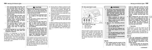 . If the rear passenger ’ s seatbelt ( s ) are / is still not fastened while driving , the seatbelt warning system operates as follows according to the vehicle speed . – The warning light will illuminate when driving approximately 4