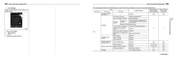1 . Touch ( HOME ). 2 . ? ( Settings ) 3 . ? “ Car ” 4 . Select the preferred menu .
