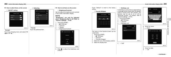 If a birthday or anniversary is approaching , a message will be shown when the ignition switch is turned to the “ ON ” position . This function can be set to on or off by “ Reminder Screen ”. For details , refer to “ General settings ” FP193 .