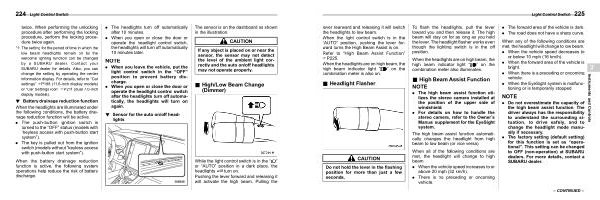 * 1 : The setting for the period of time in which the low beam headlights remain on by the welcome lighting function can be changed by a SUBARU dealer . Contact your SUBARU dealer for details . Also , you can change the setting by operating the center information display . For details , refer to “ Car settings ” FP198 ( 11.6-inch display models ) or “ Car Settings icon ” FP211 ( dual 7.0-inch display models ).