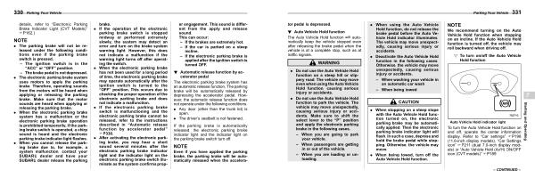 . When using the Auto Vehicle Hold function , do not release the brake pedal before the Auto Vehicle Hold indicator illuminates . The vehicle may move unexpectedly , causing serious injury or accidents .