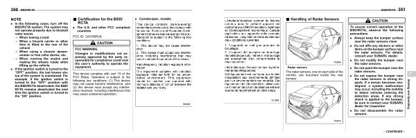 . If the ignition switch is turned to the “ OFF ” position , the last known status of the system is maintained . For example , if the ignition switch is turned to the “ OFF ” position with the BSD / RCTA deactivated , the BSD / RCTA remains deactivated the next time the ignition switch is turned to the “ ON ” position .