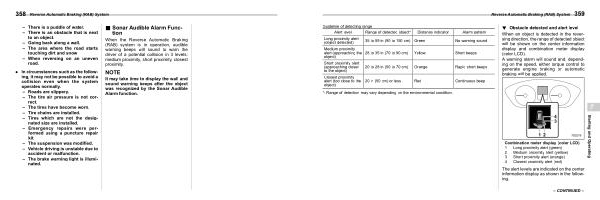 When an object is detected in the reversing direction , the range of detected object will be shown on the center information display and combination meter display ( color LCD ).
