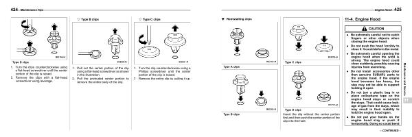 1 . Pull out the center portion of the clip using a flat-head screwdriver as shown in the illustration .