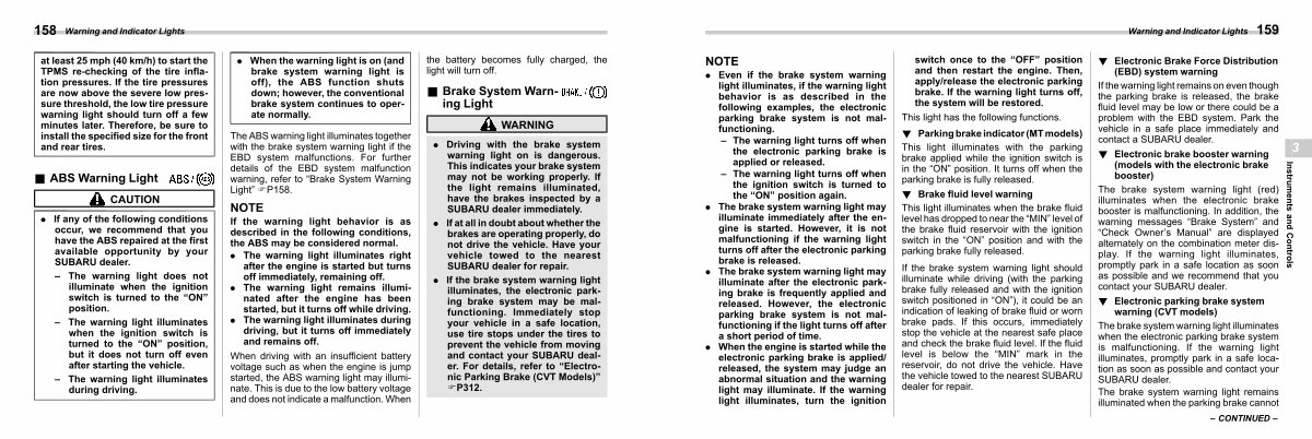 . Driving with the brake system warning light on is dangerous. This indicates your brake system may not be working properly. If the light remains illuminated, have the brakes inspected by a SUBARU dealer immediately.