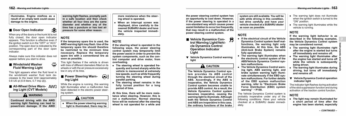 system are still available. You will be safe while driving in this condition, but drive carefully and have your vehicle checked at a SUBARU dealer as soon as possible.