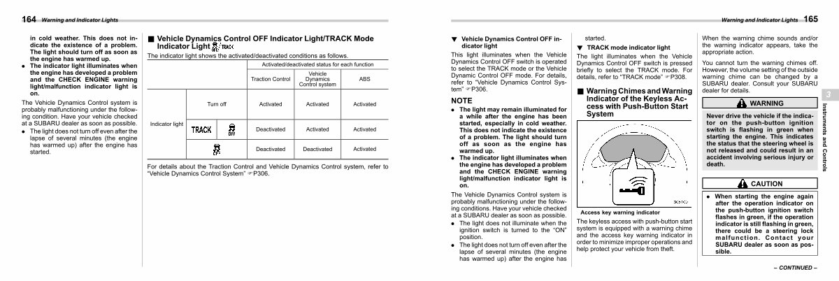 The Vehicle Dynamics Control system is probably malfunctioning under the following condition. Have your vehicle checked at a SUBARU dealer as soon as possible.