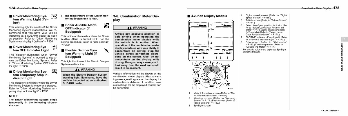 7 SI-DRIVE indicator( if equipped)( Refer to“ SI-DRIVE Indicator Light” FP170.)