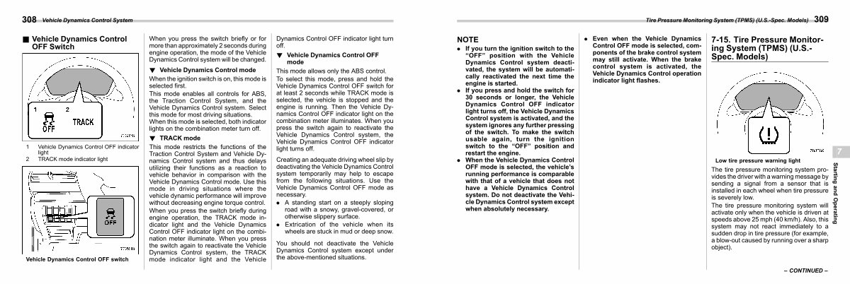 . When the Vehicle Dynamics Control OFF mode is selected, the vehicle’ s running performance is comparable with that of a vehicle that does not have a Vehicle Dynamics Control system. Do not deactivate the Vehicle Dynamics Control system except when absolutely necessary.