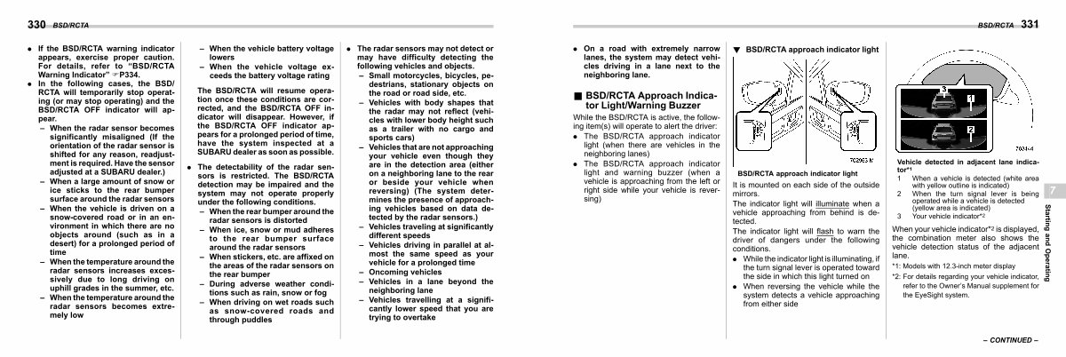 * 2: For details regarding your vehicle indicator, refer to the Owner’ s Manual supplement for the EyeSight system.