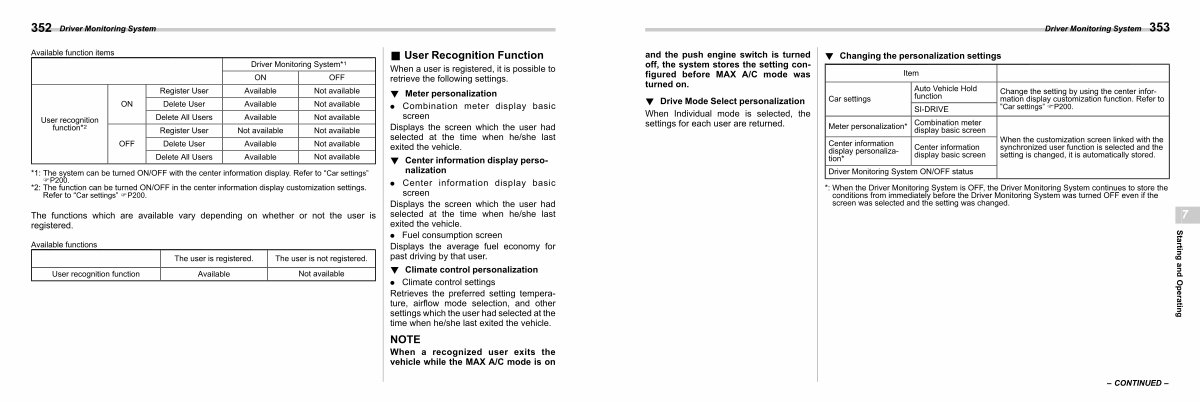 Driver Monitoring System 353 and the push engine switch is turned off, the system stores the setting configured before MAX A / C mode was turned on.
