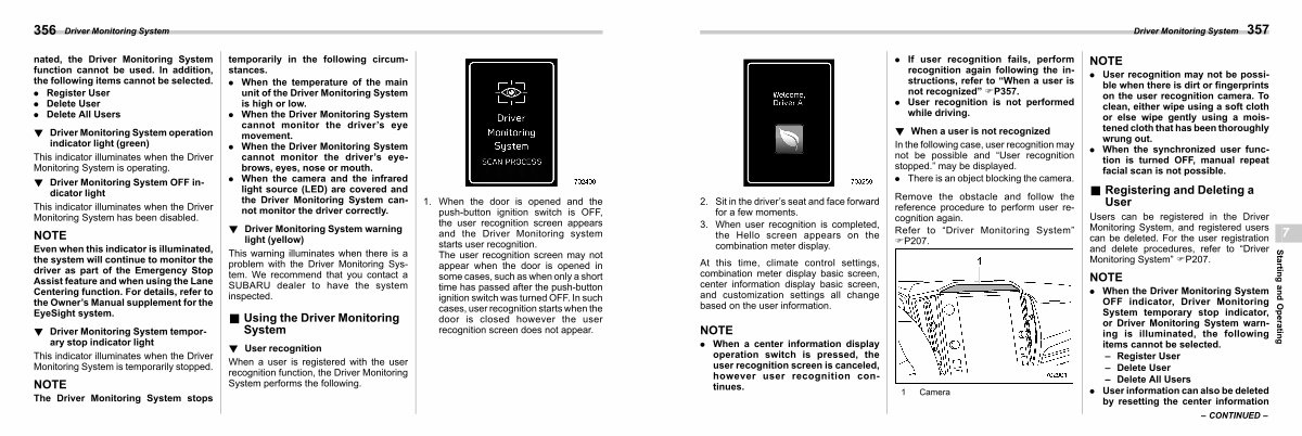 Even when this indicator is illuminated, the system will continue to monitor the driver as part of the Emergency Stop Assist feature and when using the Lane Centering function. For details, refer to the Owner’ s Manual supplement for the EyeSight system.