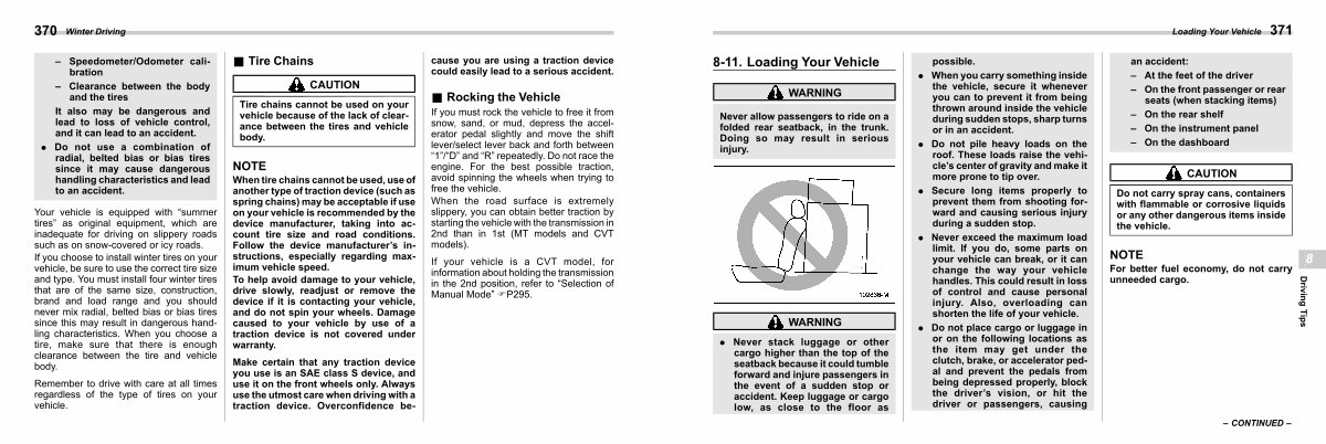 . Never stack luggage or other cargo higher than the top of the seatback because it could tumble forward and injure passengers in the event of a sudden stop or accident. Keep luggage or cargo low, as close to the floor as