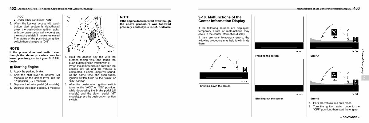 If the engine does not start even though the above procedure was followed precisely, contact your SUBARU dealer.