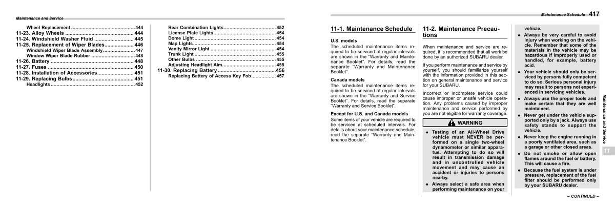 Wheel Replacement............................................ 444 11-23. Alloy Wheels............................................... 444 11-24. Windshield Washer Fluid........................... 445 11-25. Replacement of Wiper Blades.................... 446 Windshield Wiper Blade Assembly...................... 447 Window Wiper Blade Rubber.............................. 448 11-26. Battery......................................................... 448 11-27. Fuses........................................................... 450 11-28. Installation of Accessories......................... 451 11-29. Replacing Bulbs.......................................... 451