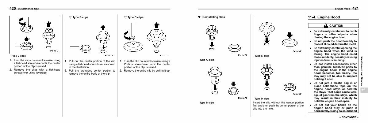 1. Pull out the center portion of the clip using a flat-head screwdriver as shown in the illustration.