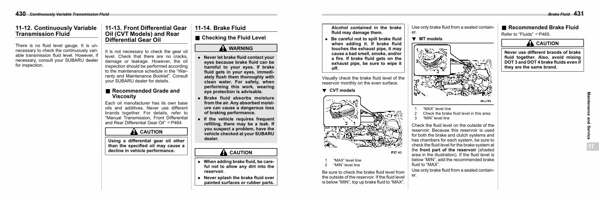 Be sure to check the brake fluid level from the outside of the reservoir. If the fluid level is below“ MIN”, top up brake fluid to“ MAX”.