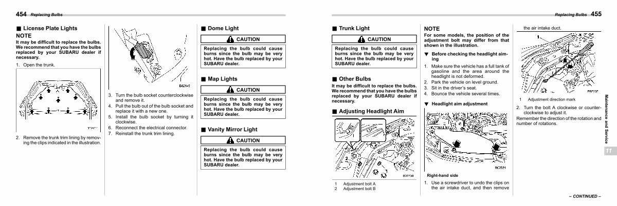 Replacing the bulb could cause burns since the bulb may be very hot. Have the bulb replaced by your SUBARU dealer.