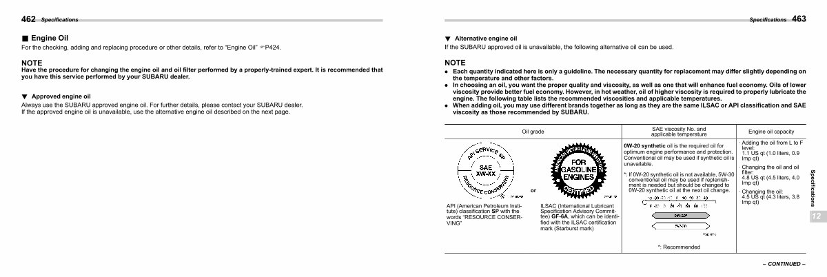 Always use the SUBARU approved engine oil. For further details, please contact your SUBARU dealer. If the approved engine oil is unavailable, use the alternative engine oil described on the next page.