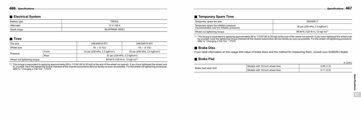* 1: This torque is equivalent to applying approximately 88 to 110 lbf( 40 to 50 kgf) at the end of the wheel nut wrench. If you have tightened the wheel nuts by yourself, have the tightening torque checked at the nearest automotive service facility as soon as possible. For the wheel nut tightening procedure, refer to“ Changing a Flat Tire” FP379.