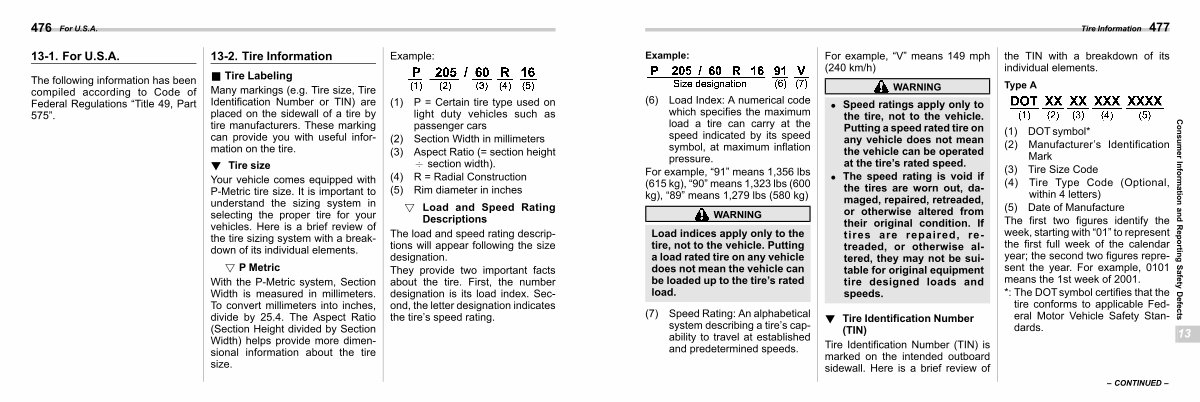 The following information has been compiled according to Code of Federal Regulations“ Title 49, Part 575”.