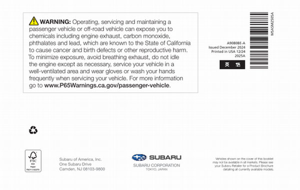 Vehicles shown on the cover of this booklet may not be available in all markets. Please see your Subaru Retailer for a Product Brochure detailing all currently available models.