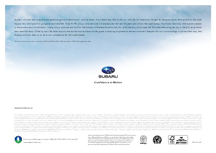 in the production of a Subaru – many of our vehicles are built in the Subaru of Indiana Automotive, Inc. (SIA) factory, which was the first manufacturing facility in the U.S. to achieve