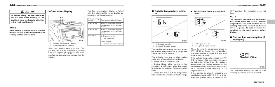 fuel consumption (if equipped) and average fuel consumption are indicated on the
