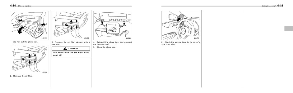 Climate control 6. Attach the service label to the driver’s side door pillar. 4-15