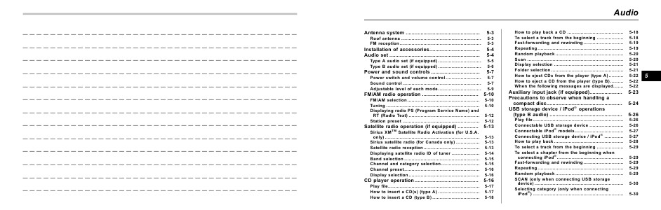 Type B audio set (if equipped) .............................