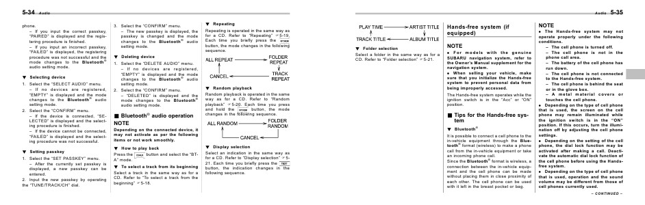 & Tips for the Hands-free system