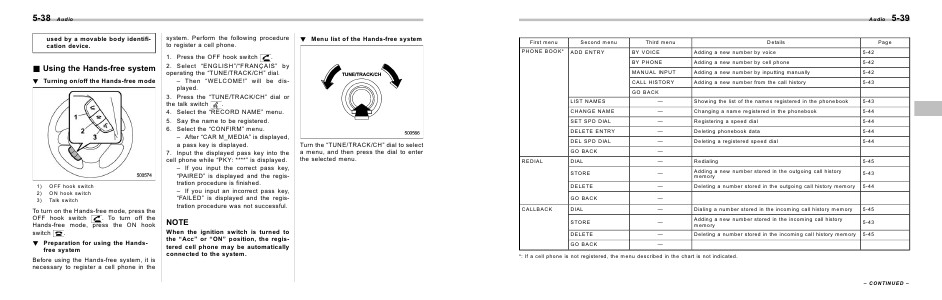 *: If a cell phone is not registered, the menu described in the chart is not indicated.