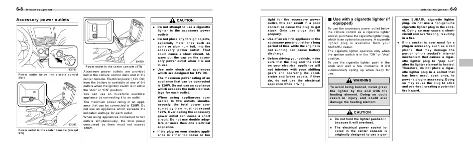 could cause a short circuit. Always put the cap on the accessory power outlet when it is not