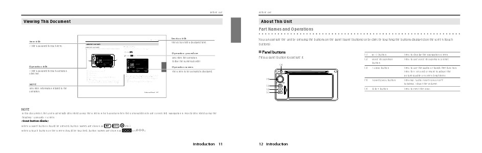 You can operate the unit by pressing the buttons on the panel (panel buttons) or by directly touching the buttons displayed on the screen (touch