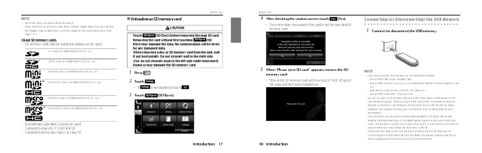 • Do not connect USB memory devices other than those conforming to the