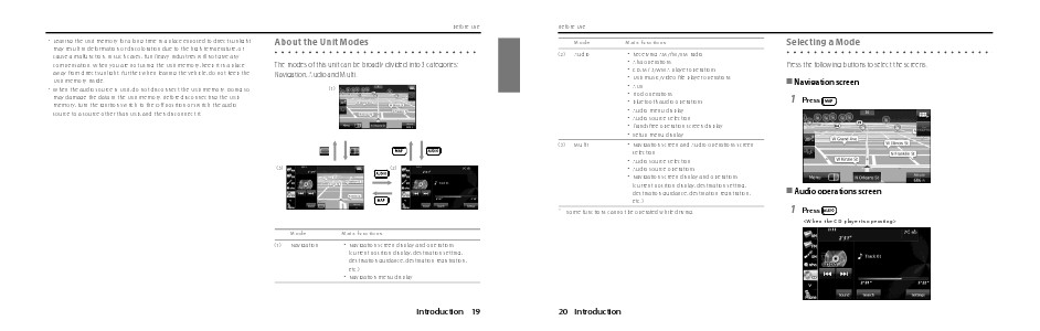 • Navigation screen and Audio operations screen