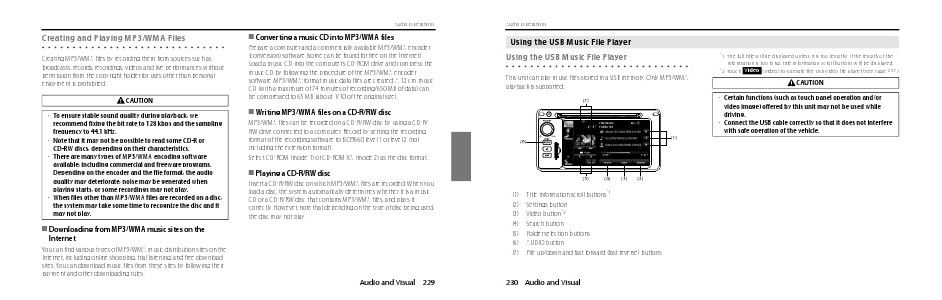 This unit can play music files stored in a USB memory. Only MP3/WMA