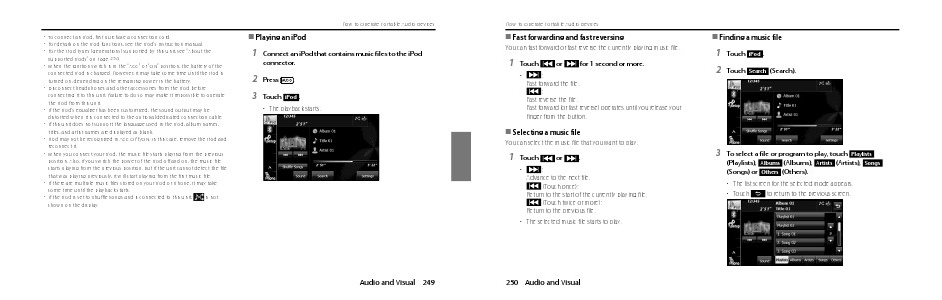 • iPod may not be recognized in ACC OFF/ON. In this case, remove the iPod and