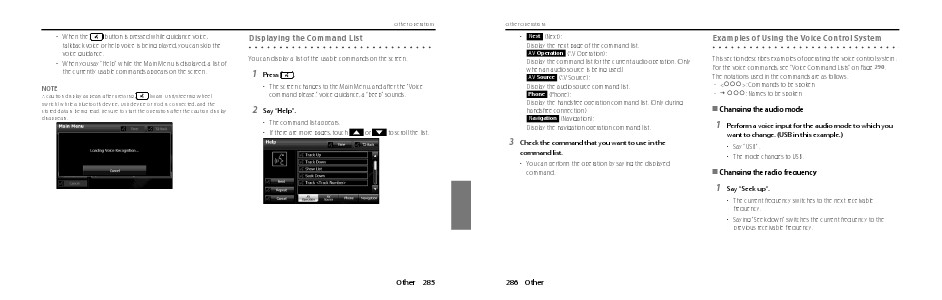 For the voice commands, see “Voice Command Lists” on Page 290.