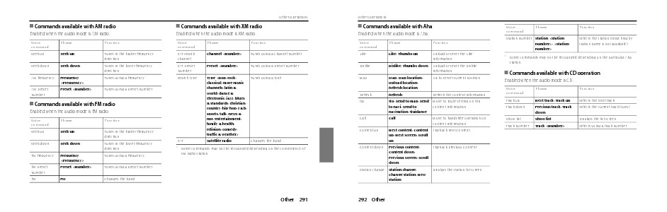 ■ Commands available with XM radio
